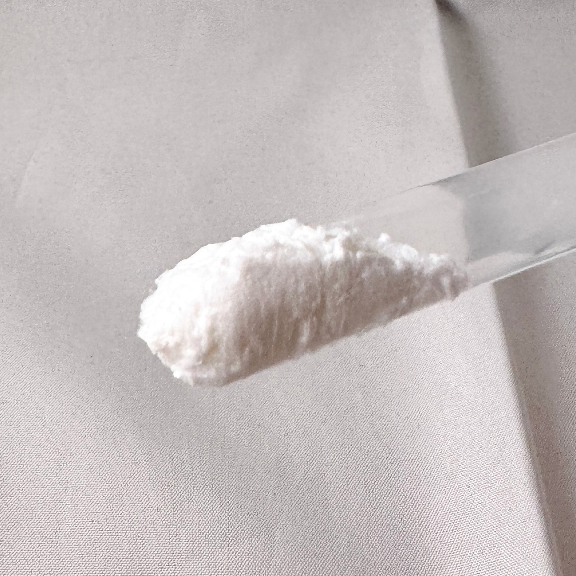 2. Use a spatula to scoop a nickel-sized Spumy Essence onto a wet palm. Add a small amount of water to soften.